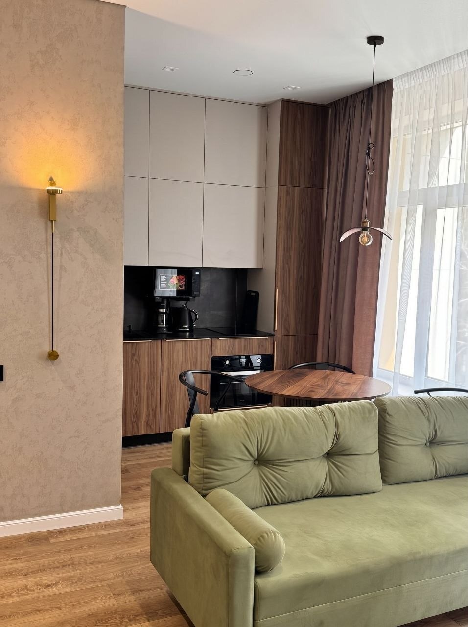 Просторный апартамент 60 кв.м. студия + спальня на 5 человек. Большая кухня-гостиная с выходом на террасу с видом на лес.